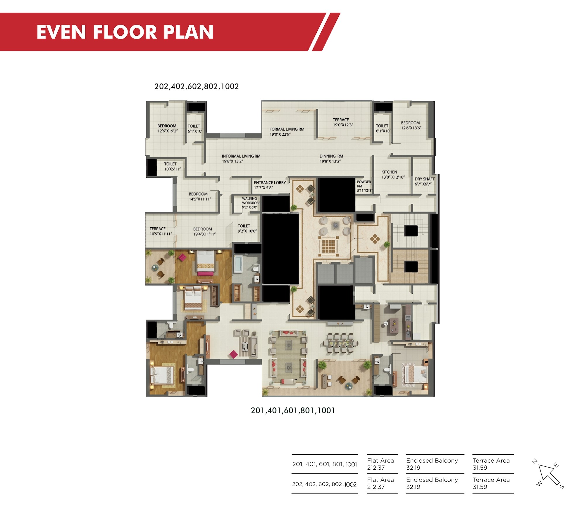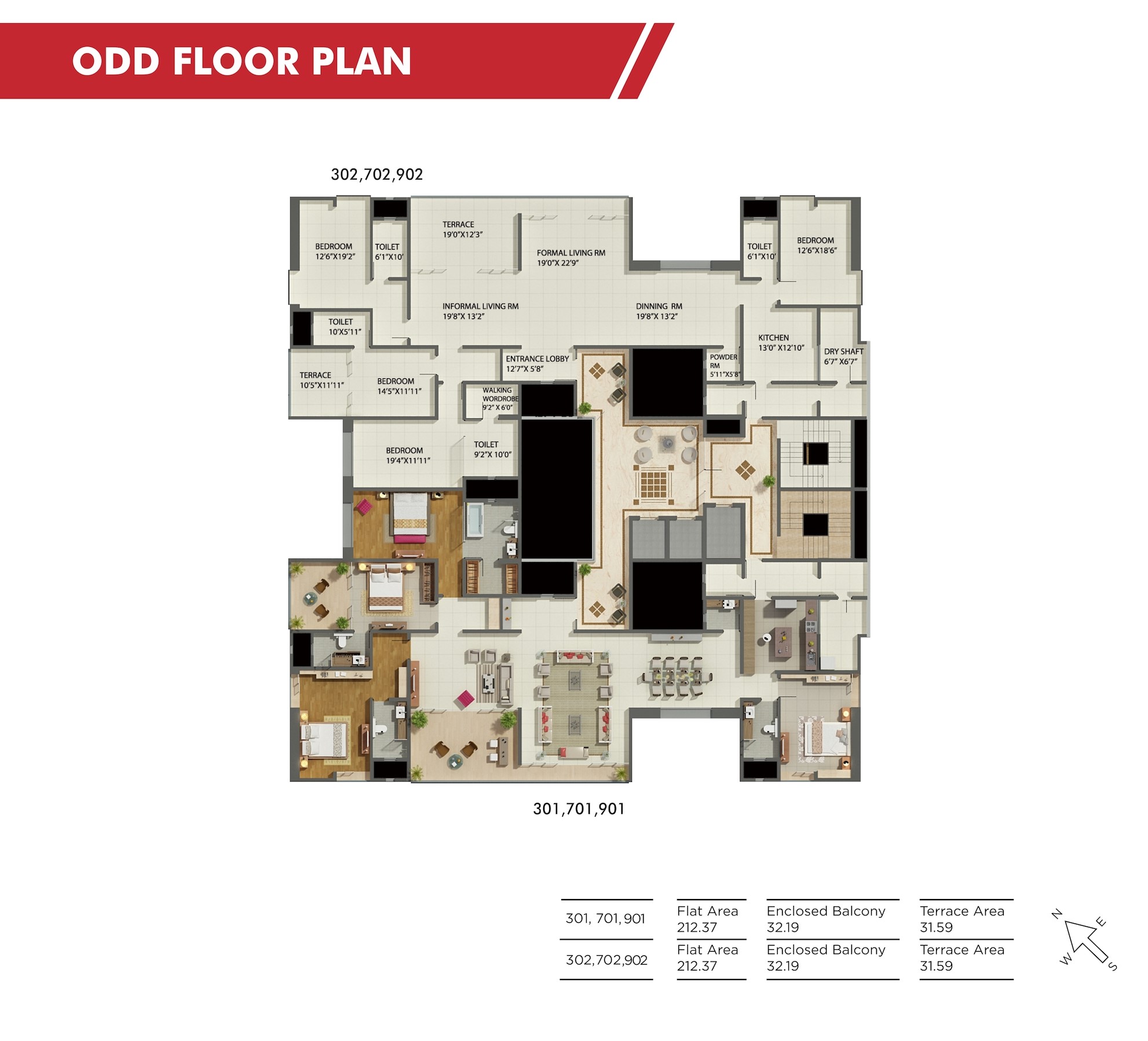 - Entire apartment will be air-conditioned using packaged AC system for living/dining and using split/ Hi-wall units in bedrooms.